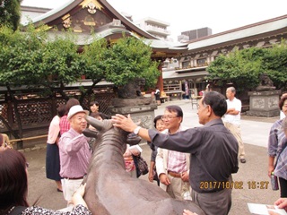 次の訪問は、湯島天神。合格祈願の神様だそうです。私は既に学校は終えているので、牛の像の腰回りをさすってきました。