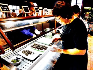 ここは、思い出を手づくりできる体験の宝庫「こもれび森のイバーランド」です。昼食は、町のバイキングで焼き物・煮物・揚げ物・カレーライス・うどん他美味しいジャージー牛の牛乳や自家製ソーセージは格別! 各班ごとに座って思い切り食べた!!