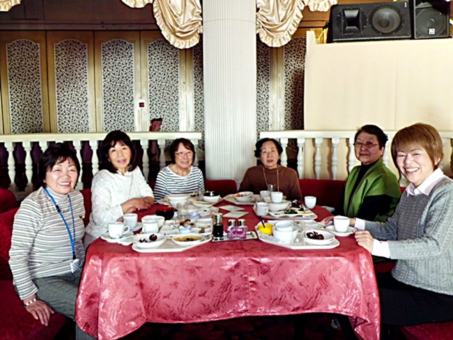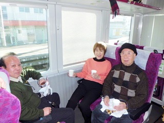 *車内にて、弁当を食べながらお昼の宴会を開催