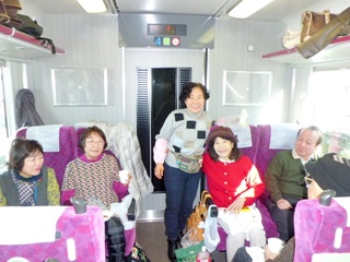 ■初日(6日) 籠原駅始発の普通列車(なんとグリーン車)に乗り、1班10名、(男子4名、女子6名)の元気なシルバー達の旅行です。
