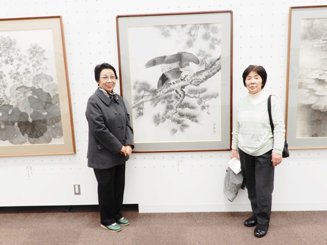 普段、横内先生より水墨画クラブの開催日に毎回、勉強用課題が出されてその課題を難しい!難しい!と練習している部員にとっては、東京都美術館で毎年開催される「全日本水墨画展」は、われわれ水墨画クラブ部員にとって目を見張る作品ばかりです。この3月1日を水墨画クラブ授業と位置付けて、まず全体の構図、余白の取り方、濃淡の表し方等を現物で見られて非常に勉強になりました。また出展作品は、50号から100号の作品が多く、大きさだけで圧倒されます。