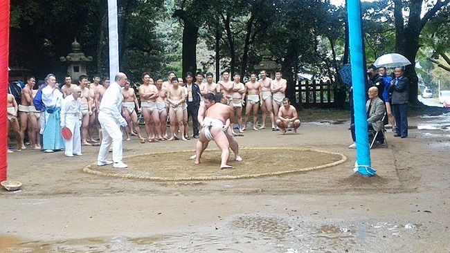 偶然にも下総海上自衛隊による奉納相撲が催されていました。