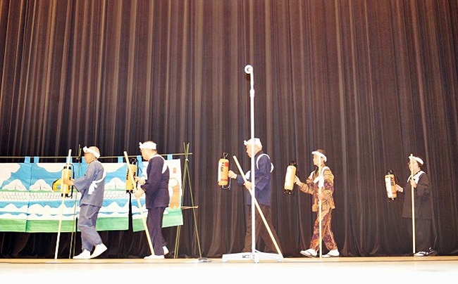 口上に始まり、村人の雑談風景、捕り物役人の心意気披露、主役の5人男の大見得と笑いと、拍手喝采を頂く大熱演となりました。