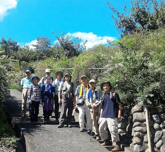 ハイキングシーズンに相応しい晴天に恵まれて、見目麗しい女性を交えて楽しく1日を過ごしました。死ぬほどに思える坂道を全員登り切った後の遍照寺での食事も美味しく頂き、ご褒美は滅多に見られない「キヌガサタケ」キノコも見ることが出来た貴重な1日でした。