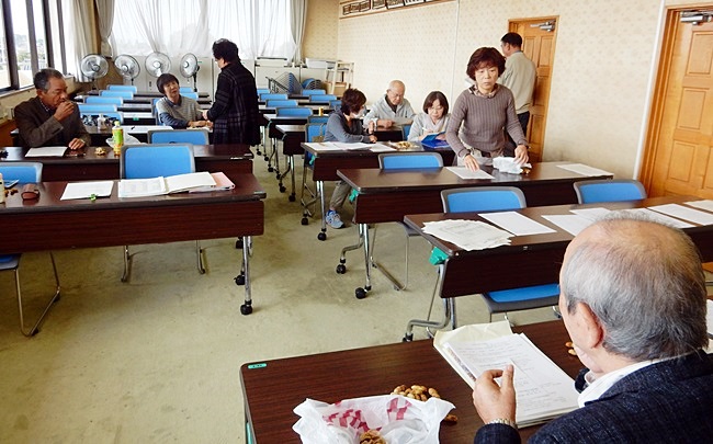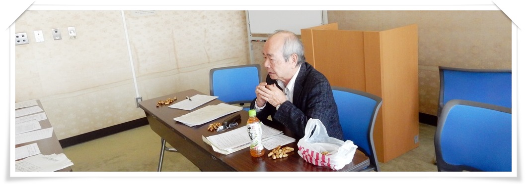 (後を惹く落花生を頂きながら、和やかな会議風景)