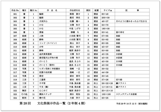 熊連協ホームページ活用状況と対外的な事前PR活動中間報告 文化祭出展者一覧表