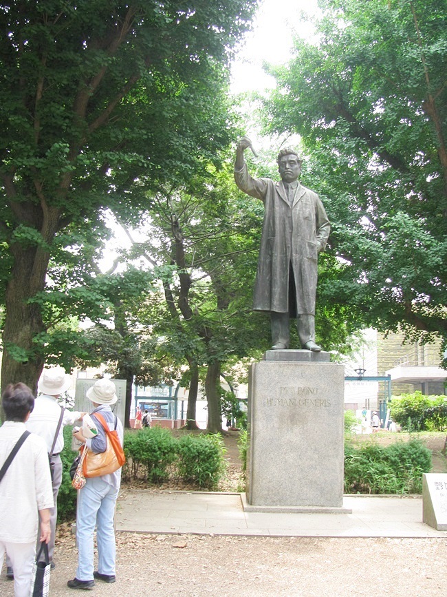 少し歩いて森の中で、試験管を振っている千円札でおなじみの野口英世博士像。