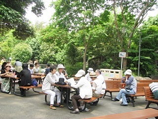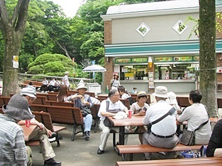 動かない鳥ハシビロコウ(園内では餌に困らないため、よく動いていました)フラミンゴを見て池の端口から出て、昼食場所の東大学生食堂に向かいました。
