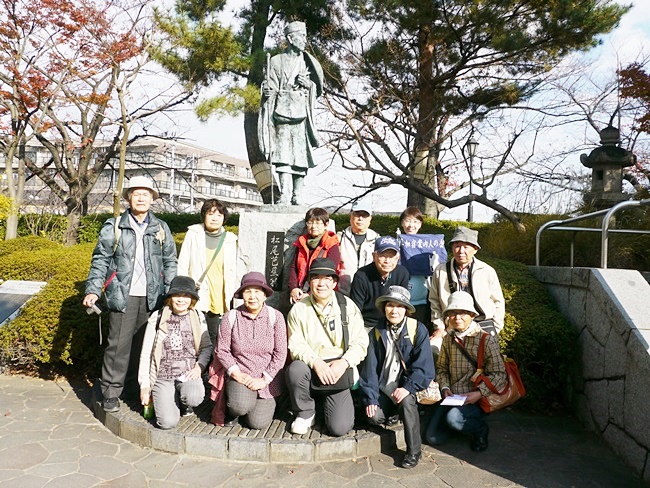 公園)→六丁目橋(13:10)→松尾芭蕉像→望楼→甚左衛門堰→札場河岸→正岡子規句碑→高浜虚子