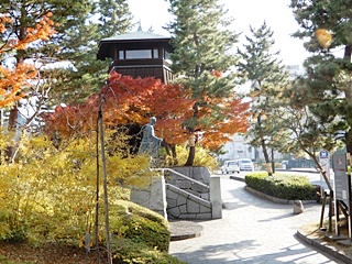 草加松原南端にある、かつての「河岸」の面影を今に再現する公園です。園内にはかつて札場河岸公園の賑わった舟運の河岸場が復元されているほか、高さ12.5m(基礎の石垣を含む)の五角形の望楼が建てられています。 また同じく五角形の休憩所も建てられていて、きれいな紅葉が印象的でした。