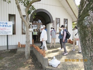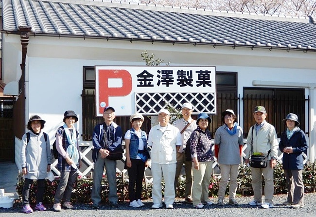 食後、行田名物「いが饅頭」の金沢製菓の前を通り、前玉神社へ向かいました。