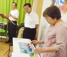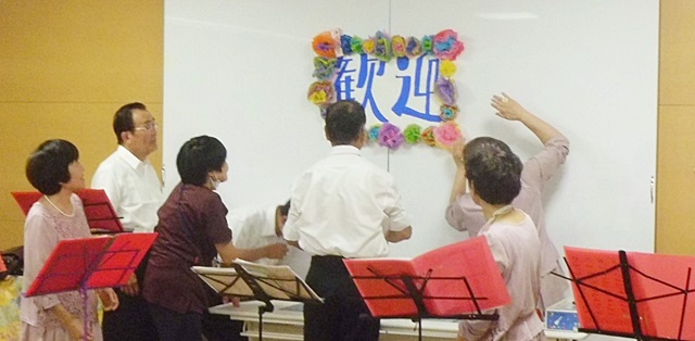 歓迎のお礼をして、皆さまに歌詞集をお渡しし、9月に合わせて、秋の童謡唱歌を4曲ほどハーモニカ演奏しました。皆さまは童謡唱歌を良く知っており、大きな声で歌っていただきました。