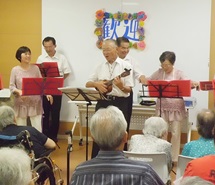 オカリナやウクレレの演奏も取り入れ、好評でした。また、今回はハンドベルとハーモニカとオカリナの合奏を行い、皆様から大きな拍手を頂きました。