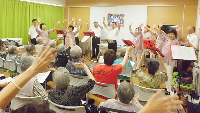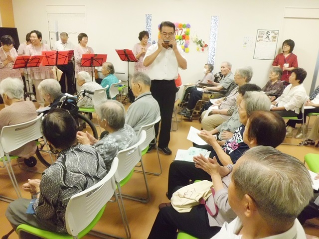 終盤は「高校三年生」などの青春歌謡曲を演奏し、大きな声で歌っていただき盛り上がりました。そして、坂本先生による演歌の独奏に、皆様が楽しく歌を口ずさみました。