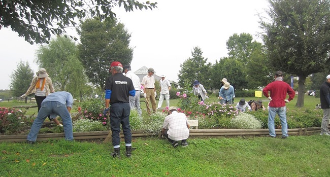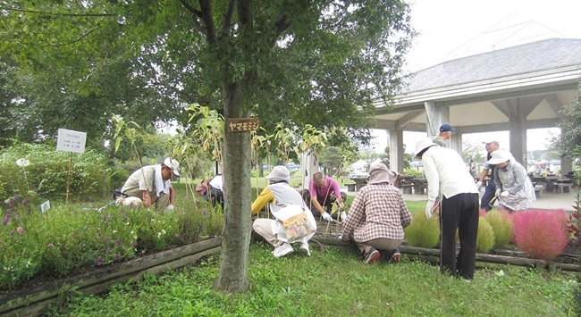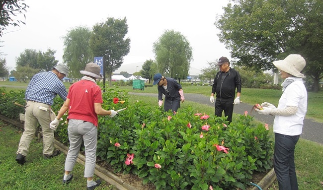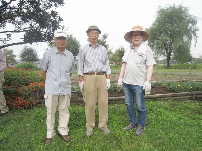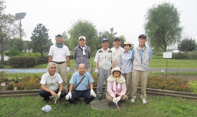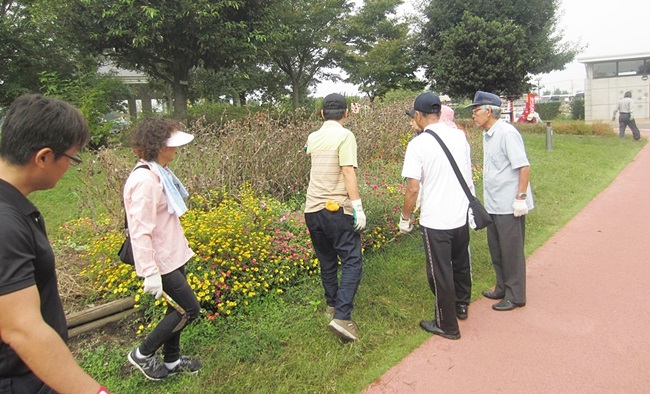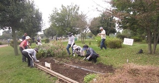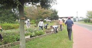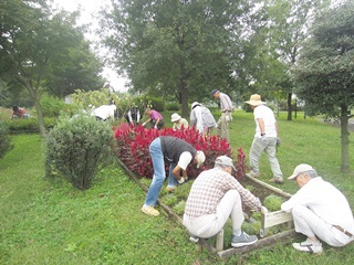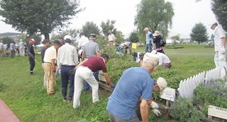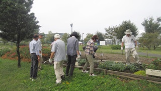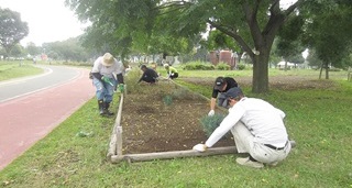 身体を解して、さあ~作業開始!各期担当花壇へ移動する。