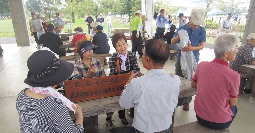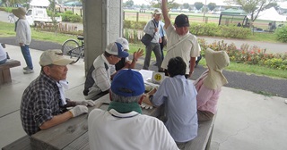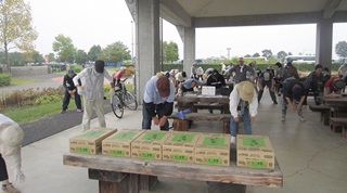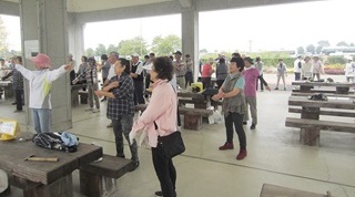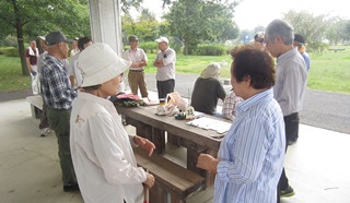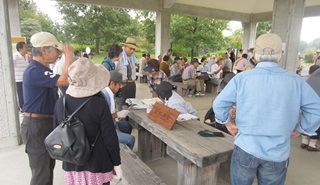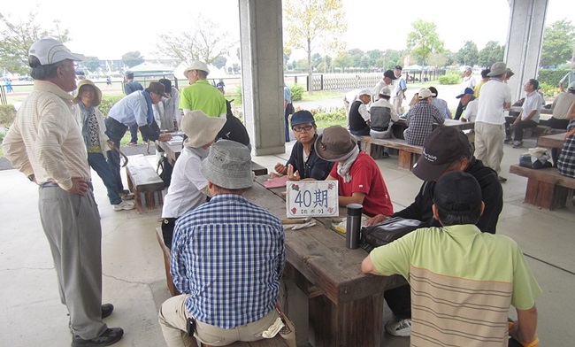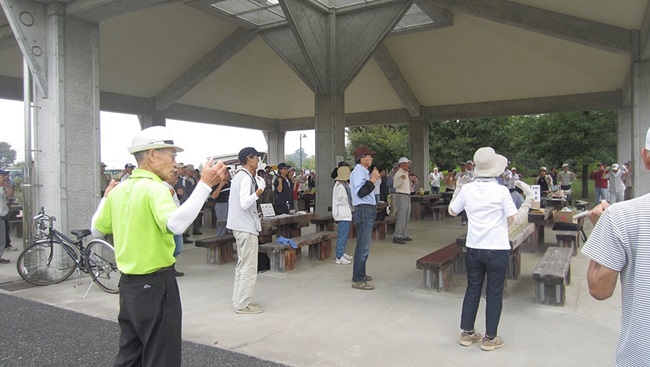 爽やかな秋風が心地よい日です。8時30分に到着すると、もう四阿の下のテーブル【4列の4列】のテーブル確保に半分が埋まっていました。9時には148名の皆さんが集まって頂きました。