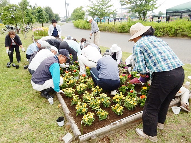 6月14日(水)今年度第二回目の花ボラが実施されました。 5月24日に行われた、第1回目で花壇を綺麗にしていただいた為、即 夏花の植え付け作業がスムーズに植え付ける事が出来ました。