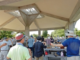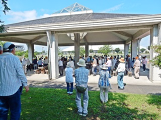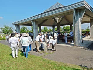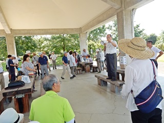 会長挨拶には、とにかく無理をしないで、熱中症にご注意してくださいとのご挨拶。 又、公園事務所からも激励のご挨拶を頂きました。ラジオ体操も日陰を求めましたが汗だくです。
