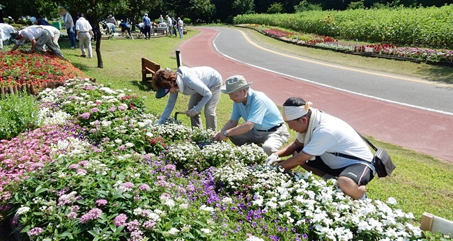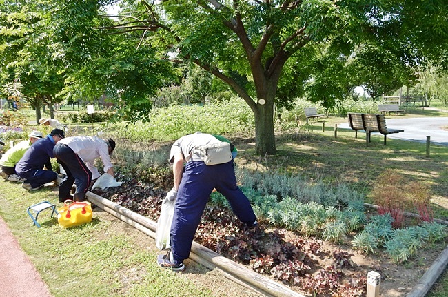 (中島会長「熱中症に気を付けて」) (公園事務所から「あまり無理しないで」)