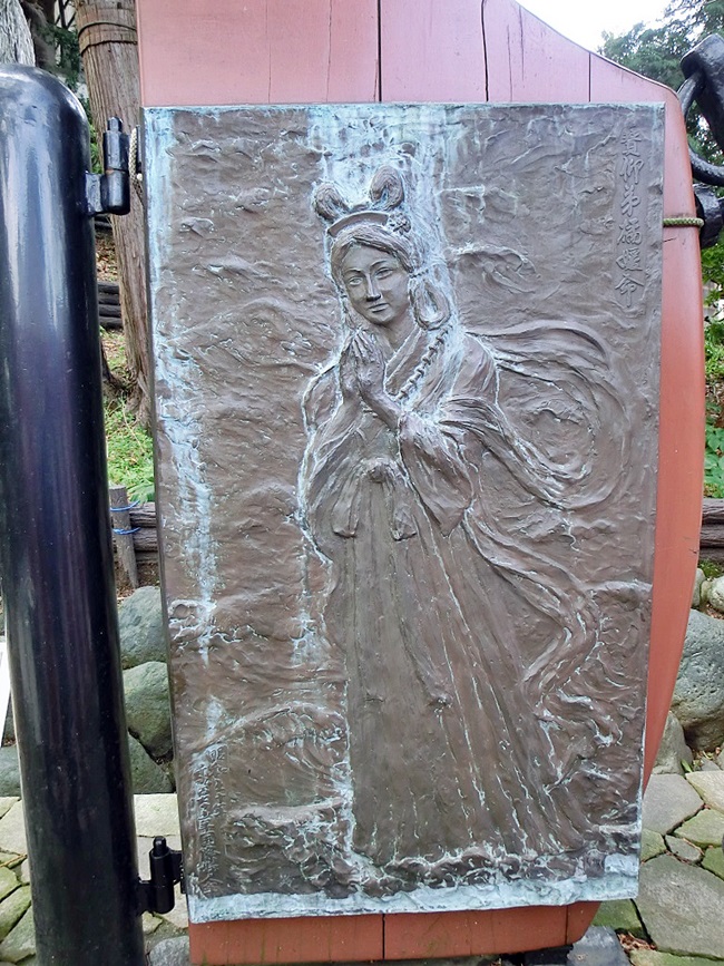 荒れた海を鎮めるため、海に身を投じて日本武尊の東征を助けた弟橘媛のレリーフがある走水神社に詣でた後、冷たい風が吹く中、トンビやカラスを道連れに、大小、沢山の船が行き交う海上交通の要衝・浦賀水道沿いに観音崎まで歩いた。