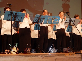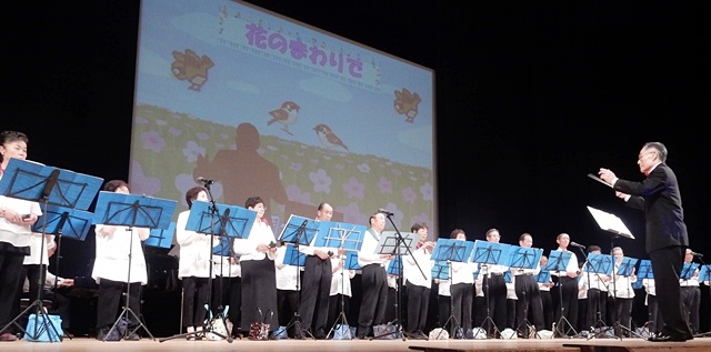 代表の小野ヤイ子さんから活動の紹介で20期生~専科2期生までのメンバー80名で構成しているそうです、講師は倉林正義先生 今回は37名で明るく笑顔が見えて楽しそうに演奏していました。