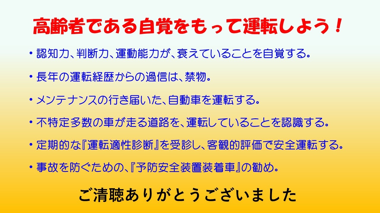 学習会は二部構成で第一部は、当期会長の酒井興一氏が講師となり『そうだったのか!ドライビングの新しい常識』と称し時代の変化を踏まえた“自動車の安全運転”に関する事項をわかりやすく解説して頂きました。