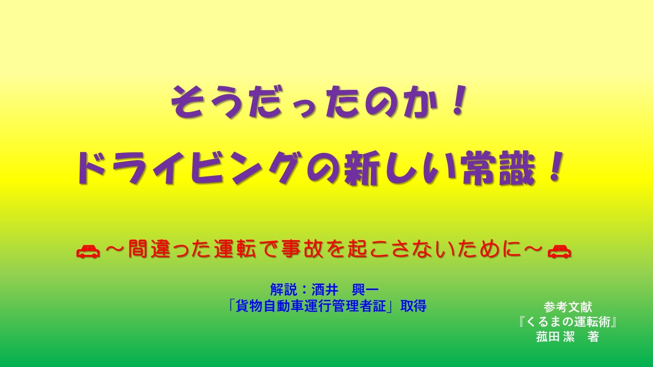 その内容は表題通り「あっ!そうだったのか」でした。筆者の感想は「せめて30年前に聞きたかった」でした。でも、まだまだ安全運転!