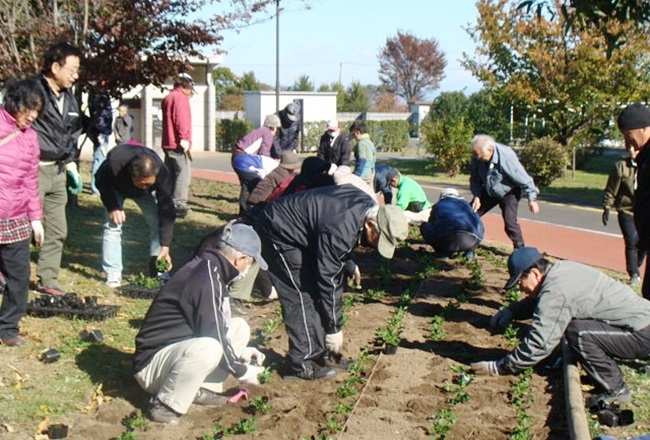 11月9日(水)第12回目となる花ボラ(秋苗植え付け)日模様です、底冷えする朝方でしたが、9時頃には太陽が眩しいほどでした。
