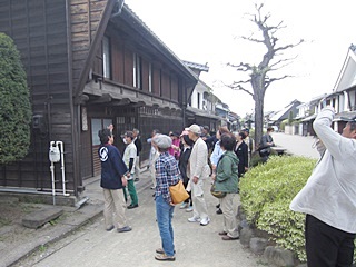ここも案内人による説明を聞きながら、旅籠造り・蚕室造りの家、防火の役割の“卯建(うだつ)”・真田家の守護神「白鳥神社」等、「日本の道百選」「重要伝統的建造物群保存地区」を散策しました。