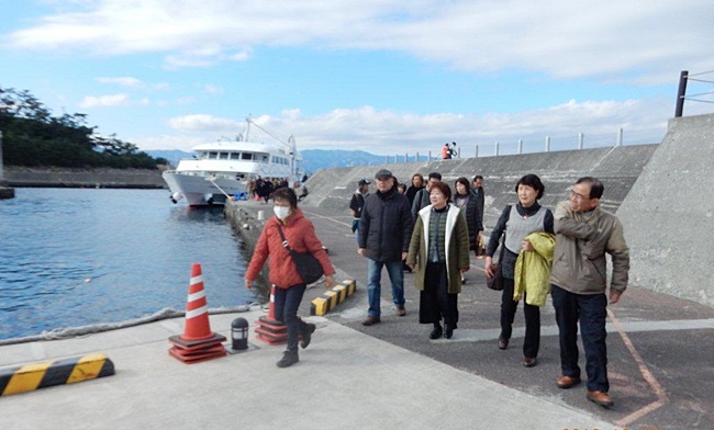 (初島に上陸するメンバー)