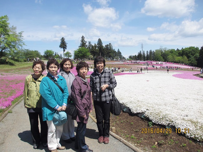 校友会2年目の班活動として、昨年に引き続き「寄居かんぽの宿」に一泊。翌日は秩父の羊山公園~県立美の山公園まで足を延ばしました。 昨年は時ならぬ雪景色と次の日の長瀞の桜でしたが、今年は天候に恵まれ、連休初日ということで早めに出発したにも拘らず駐車場が一杯で、武甲山に近い駐車場から裏手を回って羊山公園に到着。所々隙間もありましたが一面の芝桜は見事で、記念撮影の人波で賑わいは露店まで一杯でした。