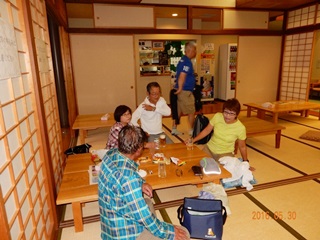 小雨が収まらず、お弁当はやや遅れて下山した所で待っていたバスの中で食べました。黒澤さんの奥様が作ってくれたお弁当(おにぎり)特に女性の方々の大好評でした。