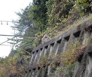 最寄駅から高崎線の下り電車に乗り、横川駅で下車してここから歩き始め、周りの紅葉を愛でながら歩いていると、野生の猿のお出迎えにはビックリしました。