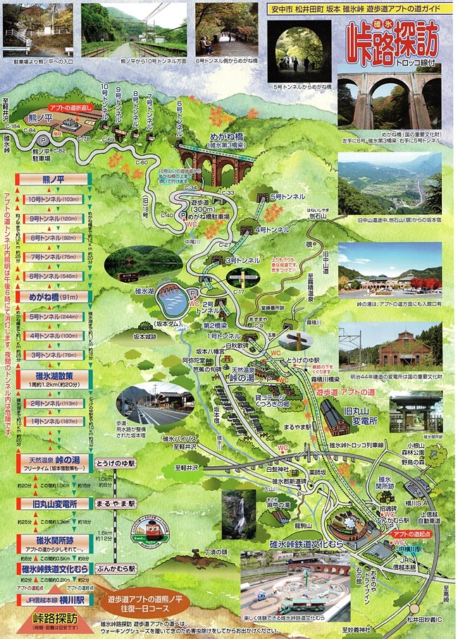 碓氷峠関所跡、旧丸山変電所跡等を見学しながら、「メガネ橋」まで約5kmゆっくりのんびりと。