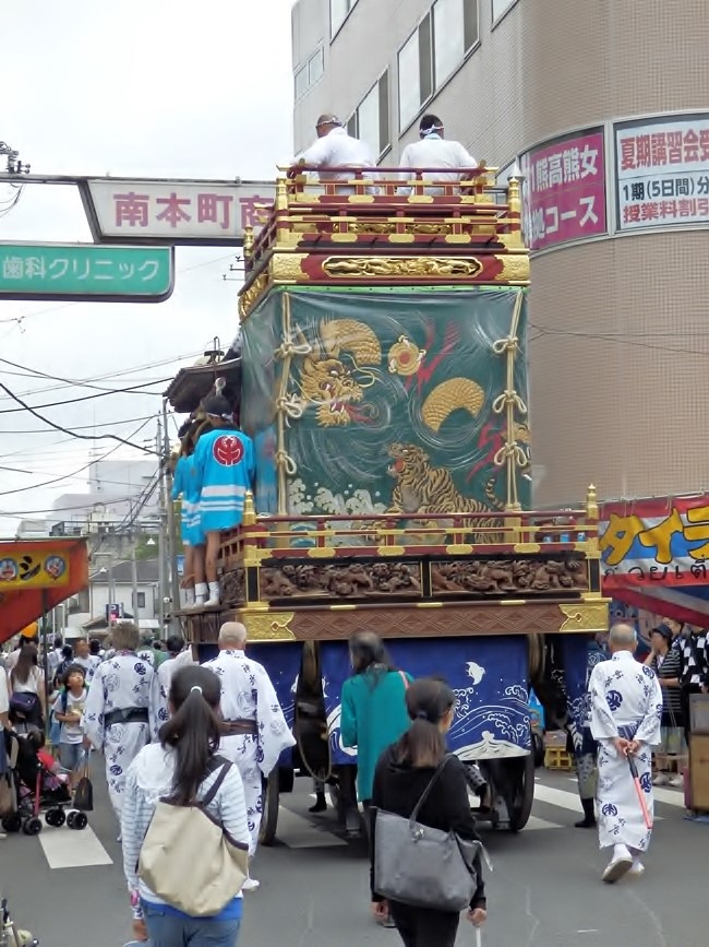 12基の山車・屋台が巡行する豪華絢爛な祭りで、熊谷に暑い夏の幕開けを告げます。第一本町区の山車の模様です。