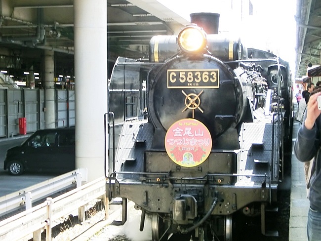 秩父鉄道熊谷駅に入線してきたSLにはこれから出かける“金尾山つつじ祭”のヘッドマーク。これは幸先良いと喜んだが、金尾山のツツジはほとんど散った後だった。