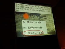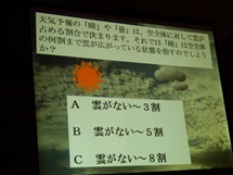 問題2番 天気予報の「晴」や「曇」は、空全体に対して雲が占める割合で決まります。それでは「晴」は空全体の何割まで雲が広がっている状態を指すのですか?