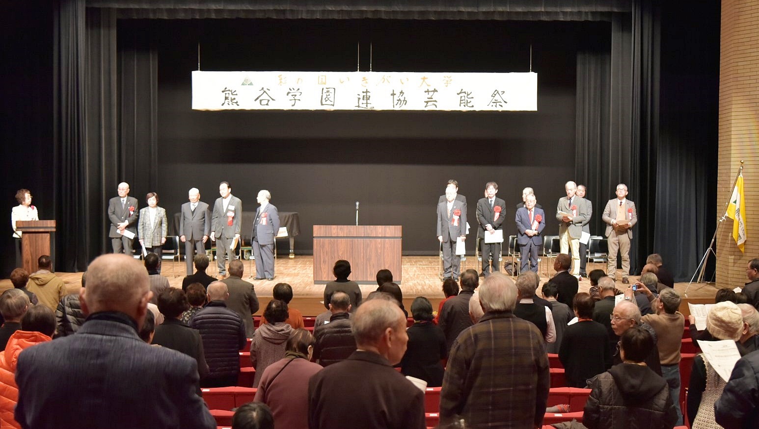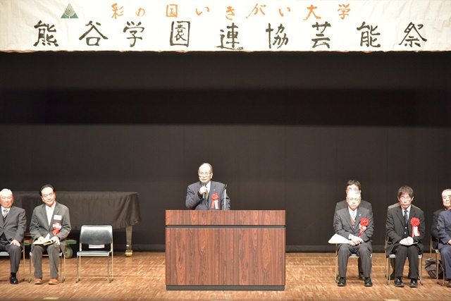 彩の国いきがい大学熊谷学園校友会連絡協議会中島武久会長がご挨拶を行いました。