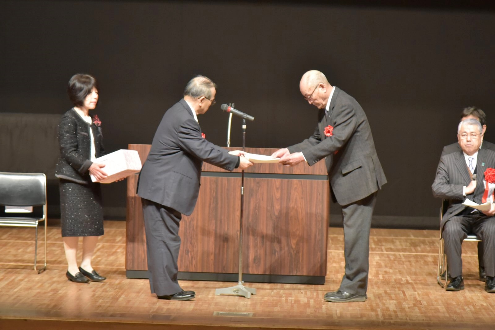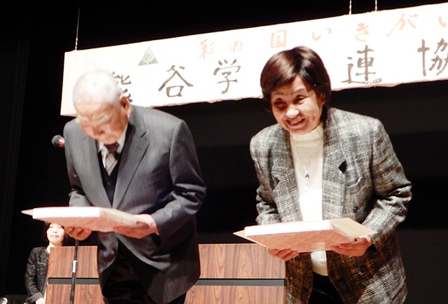 平成30年度第26回芸能祭に出演の最高齢者は男性27期中村勝年さん(88歳)、女性24期市川マツエさん(86歳)が表彰されました。
