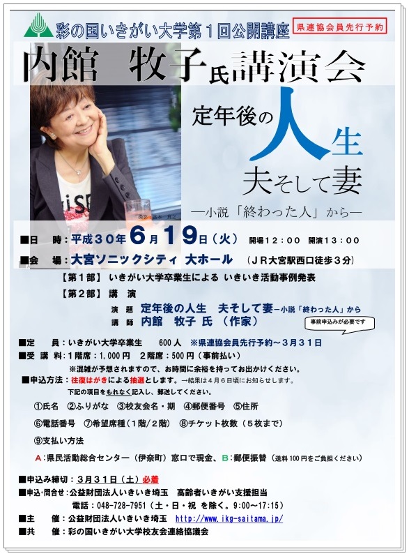 平成30年度彩の国いきがい大学第1回公開学習のご案内
