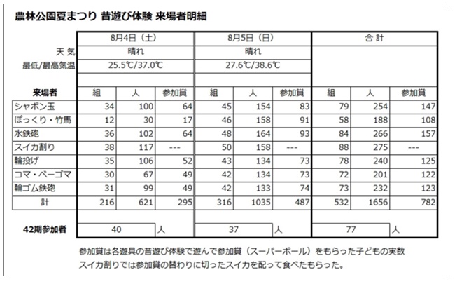 「農林公園夏まつり 昔遊び体験 来場者明細」