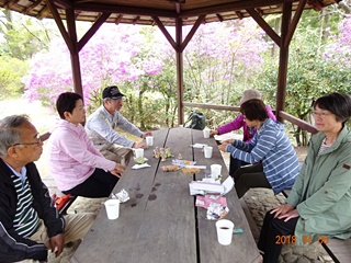 天気にも恵まれ、これまた中の四阿ではメンバーが持参したコーヒーブレイクです。