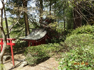 (灯篭・石碑も沢山に) (氏神様と椿)