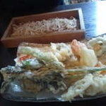 ランチを頂きました。もちろん今話題のもり・かけは避けて、なんと揚げたての天麩羅付き