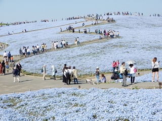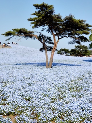 今年4月20日に「ネモヒラ」を見に来ましたが、その時は、満開時期で「ネモヒラ」と空の色が一体化していて素晴らしい事を思い出しながら見ていました。