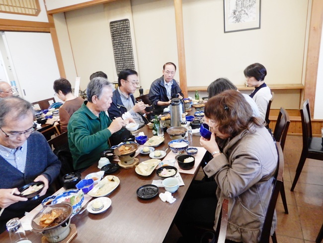 ひたち海浜公園を約7000歩ほど歩いて、11時45分頃に昼食場所の「水戸ドライブイン」へ向けて出発し、12時15分に到着。皆さんお腹が空いて、喉は乾き、着いて一目散にビールやお酒の熱燗を注文して、飲んでいました。