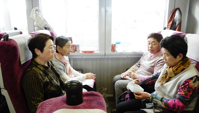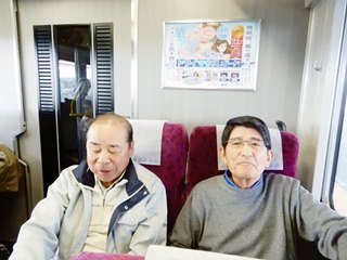 12月9日(日)~10日(月)6班メンバー9人の熱海の花火鑑賞ツアーの旅です。まず、全員が籠原駅に集合し、9時04分発の電車にて出発、全員纏めての「グリーン席」の前方の3座席車両に乗車し、出発直ぐに缶ビールにての「乾杯」し、焼酎の炭酸割を飲みながら熱海駅着12時32分。