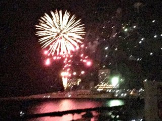 夕飯を食べてから一つの部屋に集まって、8時15分までじっと待って、いよいよ花火の始まりです。