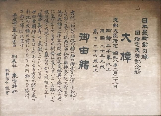 (御神木の説明看板)