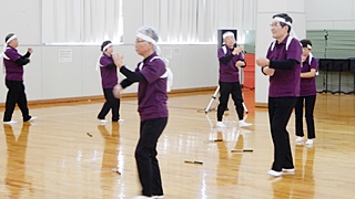 体育館に12:20分集合 我が民踊クラブの出場時間は5番目の12:35分から12:55分の20分の持ち時間です。今回の参加者は10名(男性5名・女性5名)です。